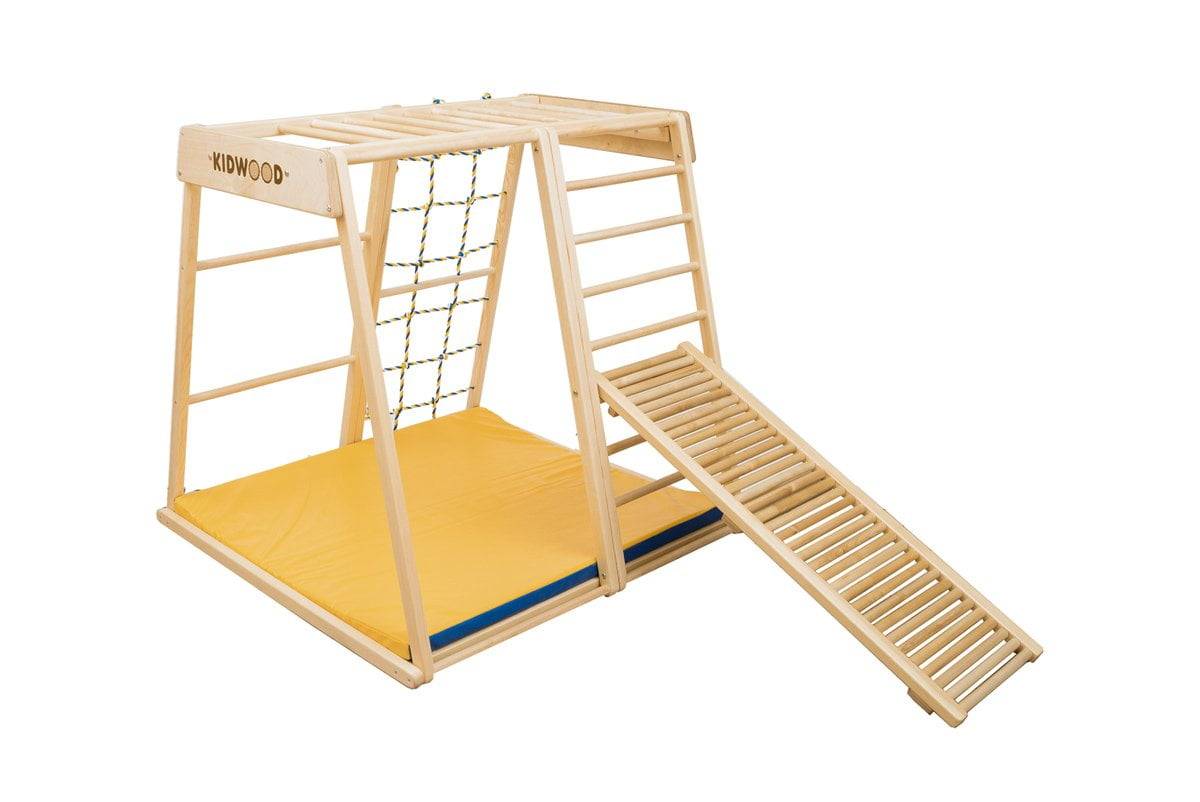Die Holzrutsche kann als Ergänzung zu einem Indoor-Spielplatz oder separat verwendet werden: einfach auf den Boden legen, ganz ohne zusätzliche Befestigung.