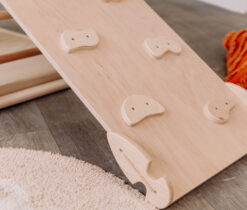 Die zweiseitige Rutsche Skandiko ist sorgfältig verarbeitet und mit einem hypoallergenen Lack beschichtet, der keine giftigen Stoffe abgibt. Die Basis der Holzrutsche für den Innenbereich besteht aus hochwertigem Birken-Sperrholz, während die Sprossen aus natürlichem Buchenholz gefertigt sind. Durch den Kontakt mit diesen Oberflächen sammelt das Kind wertvolle sensorische Erfahrungen und genießt gleichzeitig sicheres Spiel.
