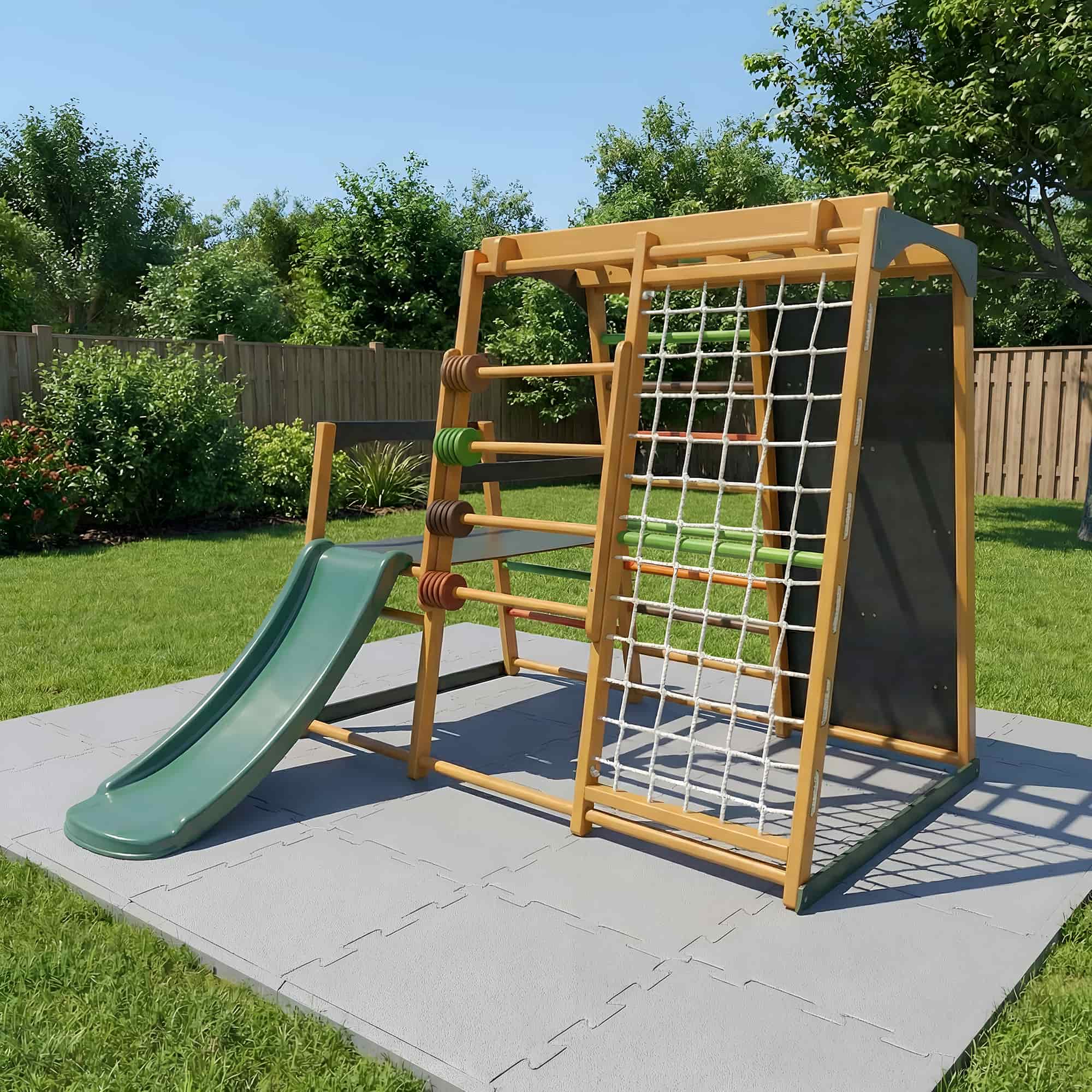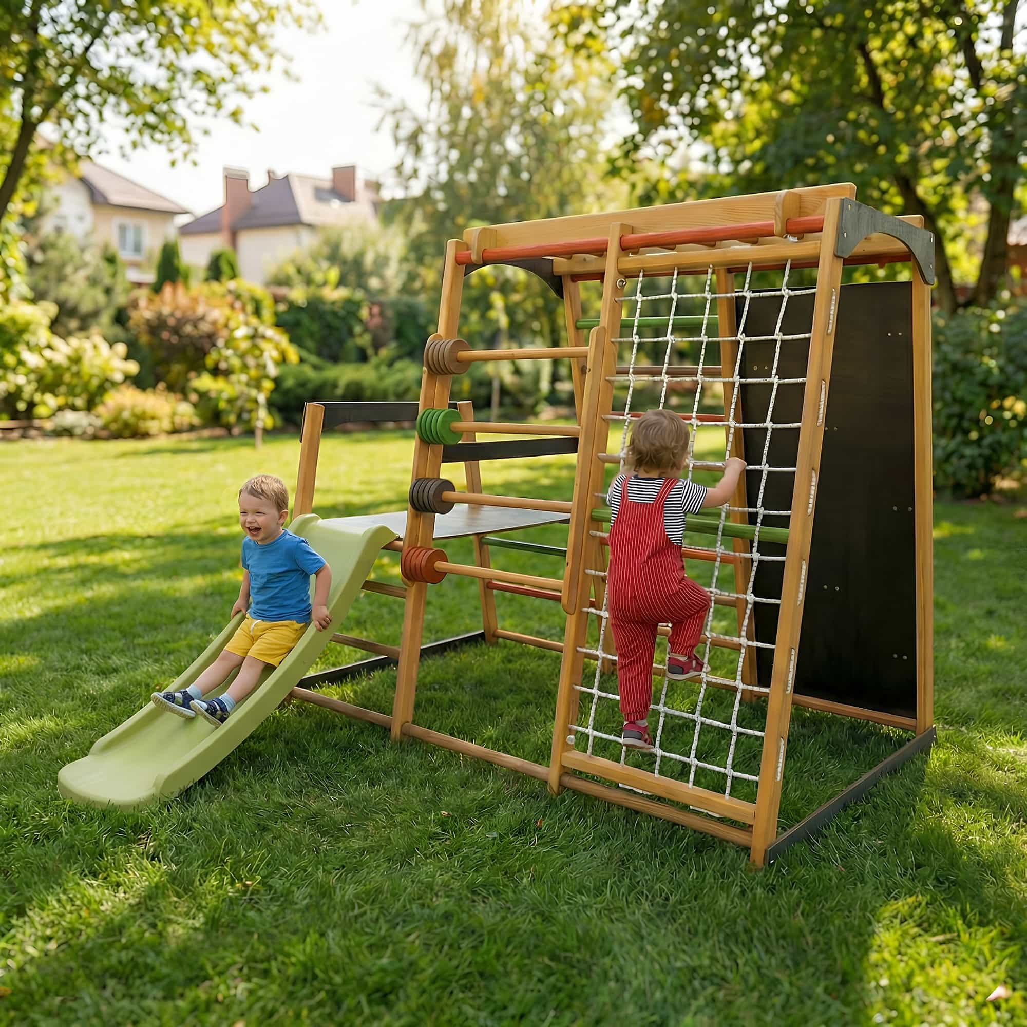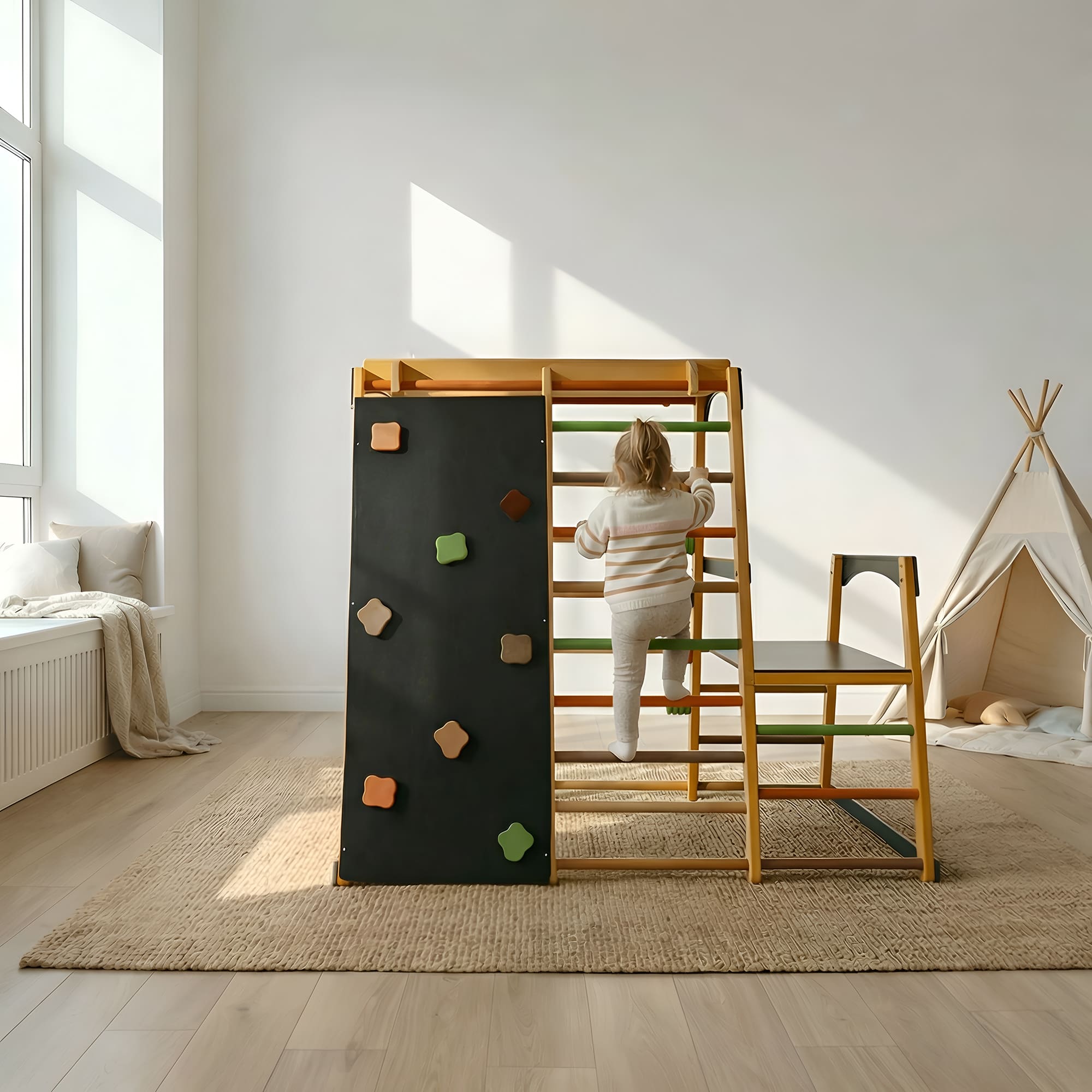 Es gibt einen Moment im Leben jedes Kindes, in dem es beginnt, sich selbst auszuprobieren: es klettert höher, schaukelt mutiger, hält sich länger fest. Genau für diese wunderbaren Momente haben wir das Klettergerüst Bambino entwickelt – ein kompaktes, durchdachtes und sicheres outdoor Klettergerüst, das ideal für jüngere Kinder ist und perfekt in jeden Garten passt.