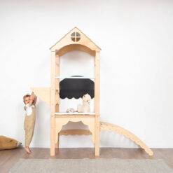 Unser Tower wurde bewusst so gestaltet, dass er sich als Klettergerüst für Kinderzimmer harmonisch in moderne Wohnräume einfügt. Er braucht keinen Garten, kein Fitnessstudio – nur einen Platz, an dem Kinder Kinder sein dürfen.