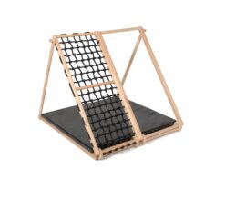 Holzpyramide (Sprossenleiter und Kletternetz aus Seil)