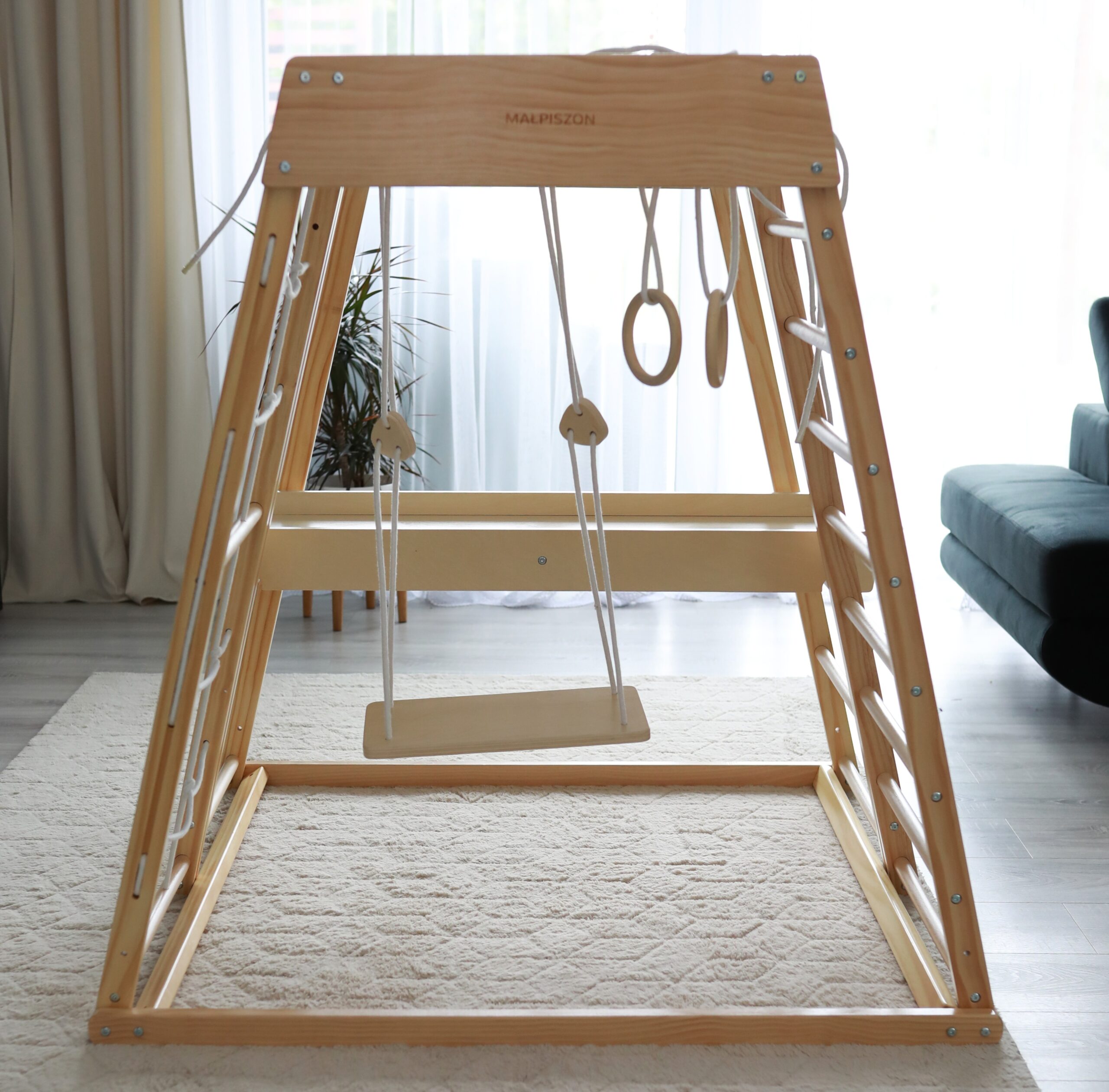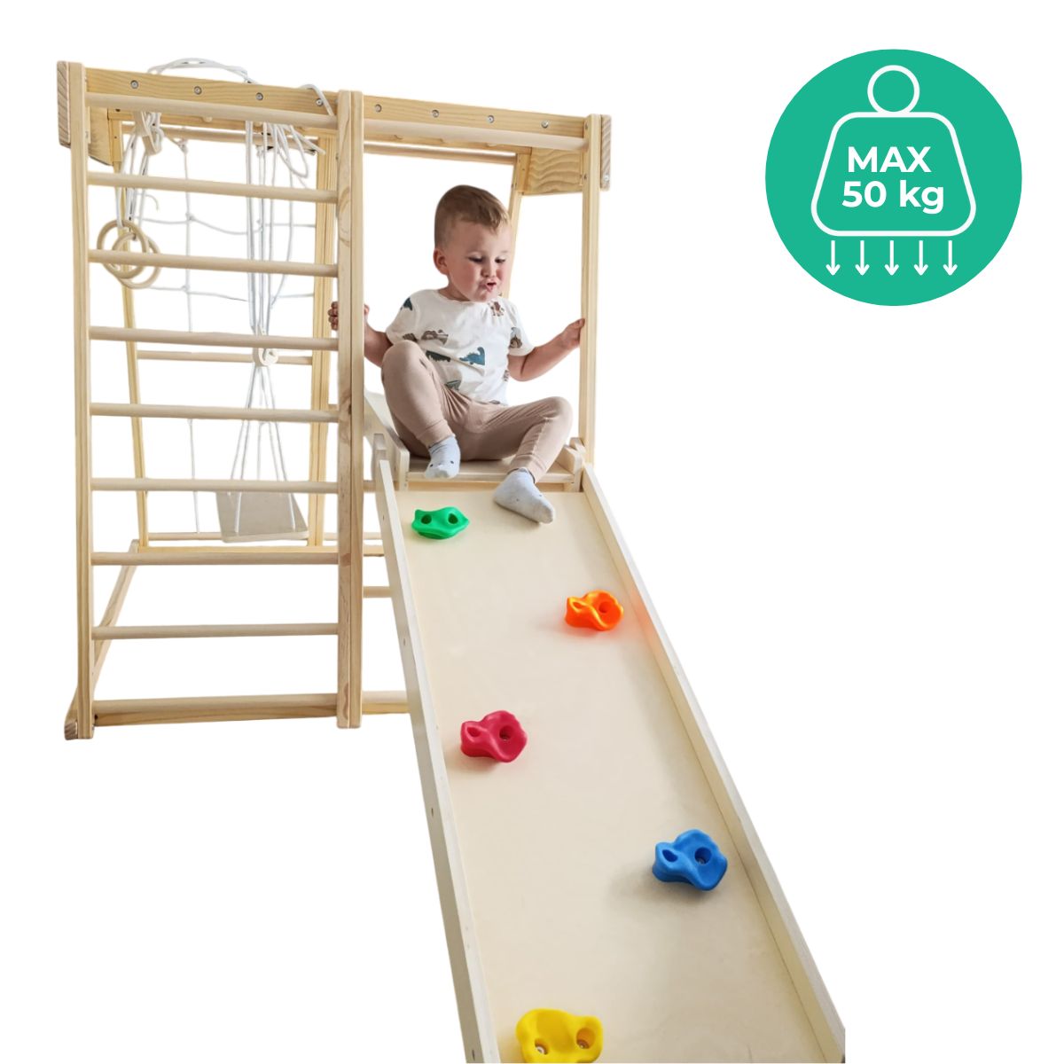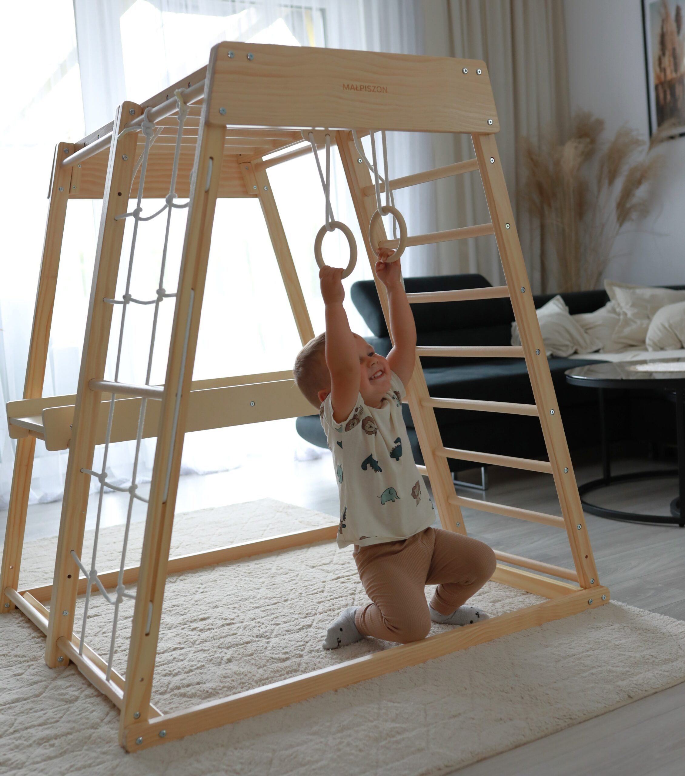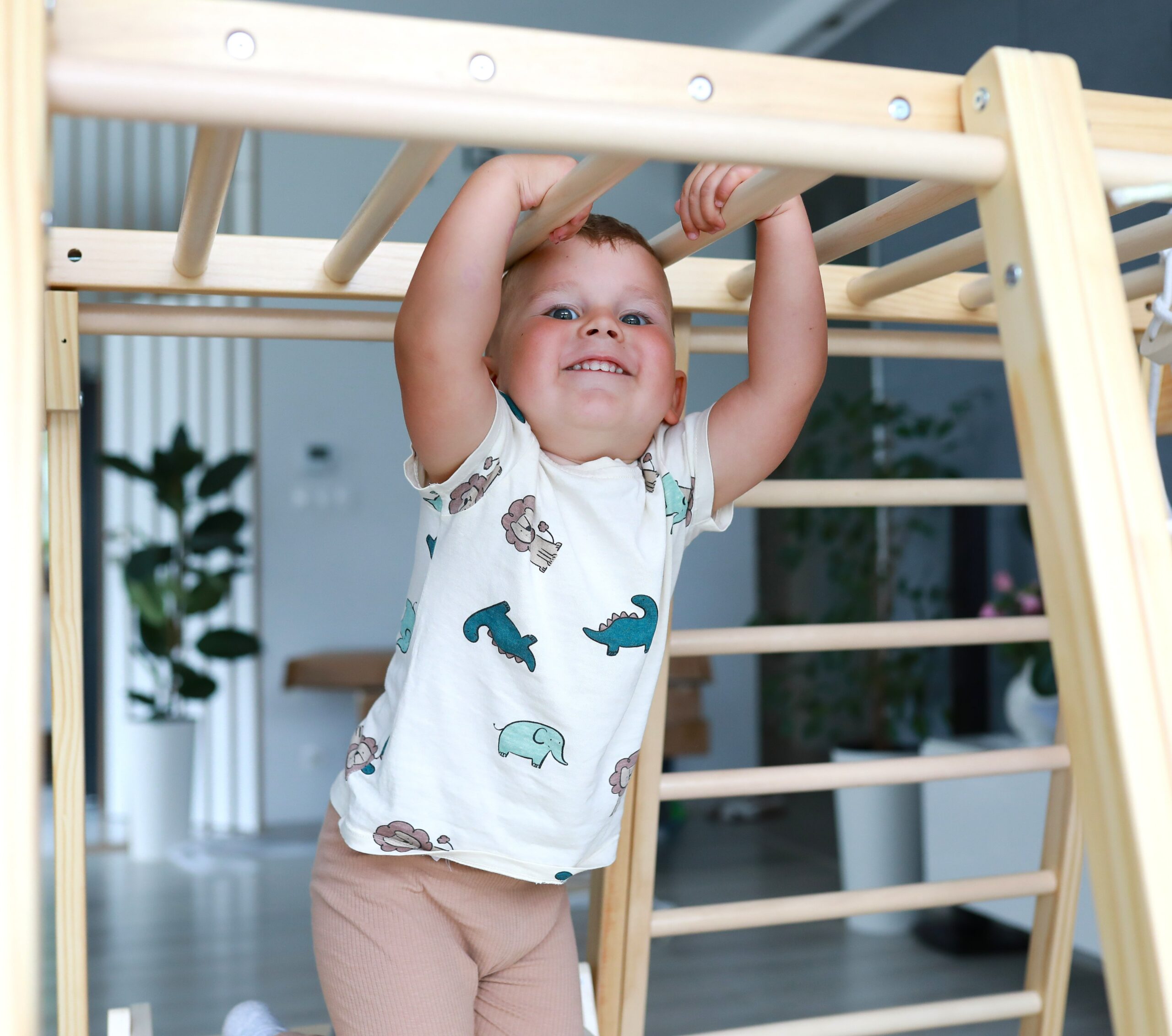 Klettern, hangeln, rutschen, sich verstecken – das Klettergerüst für Kinderzimmer bietet vielseitige Bewegungsanreize und fördert Motorik, Koordination und Selbstvertrauen.