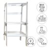 Der Lernturm Kinder bietet einen festen und sicheren Stand, sodass Ihr Kind aktiv am Alltag teilhaben kann – sei es beim Kochen, Zähneputzen oder Tischdecken. Die erhöhte Plattform bringt die Kleinen genau dorthin, wo das Leben passiert – auf Augenhöhe.