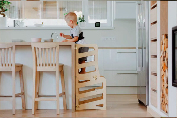 Der Lernturm Kinder bringt Ihr Kind sicher auf Augenhöhe – zum Kochen, Händewaschen oder Tischdecken. Die erhöhte Plattform ist mit Seitenschutz und abgerundeten Kanten ausgestattet, sodass Ihr kleiner Entdecker überall dabei sein kann – ganz nah und ganz sicher.