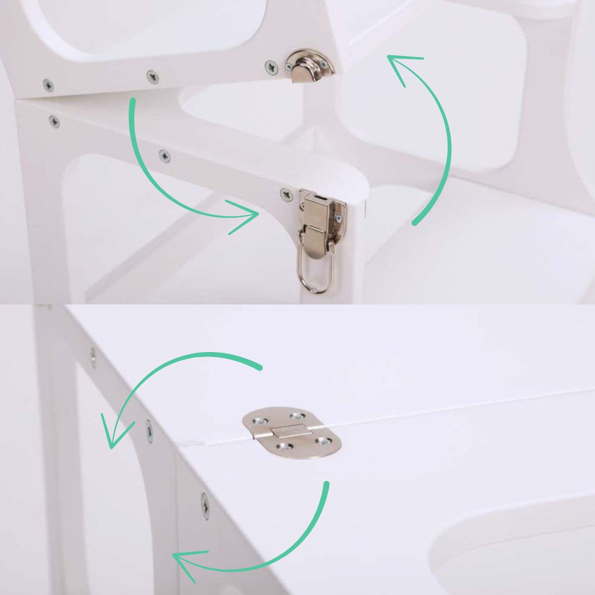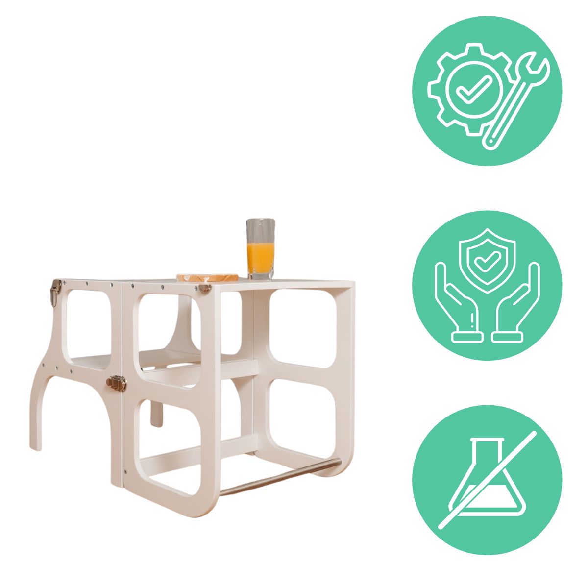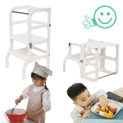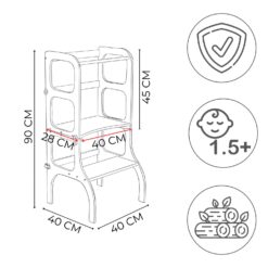 Als klassischer kinderlernturm bietet unser Modell eine stabile, erhöhte Plattform, damit Ihr Kind auf Augenhöhe mithelfen kann – beim Kochen, Backen, Hände waschen oder Zähneputzen. Ein sicherer Lernraum für echte Alltagsnähe.