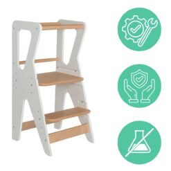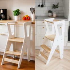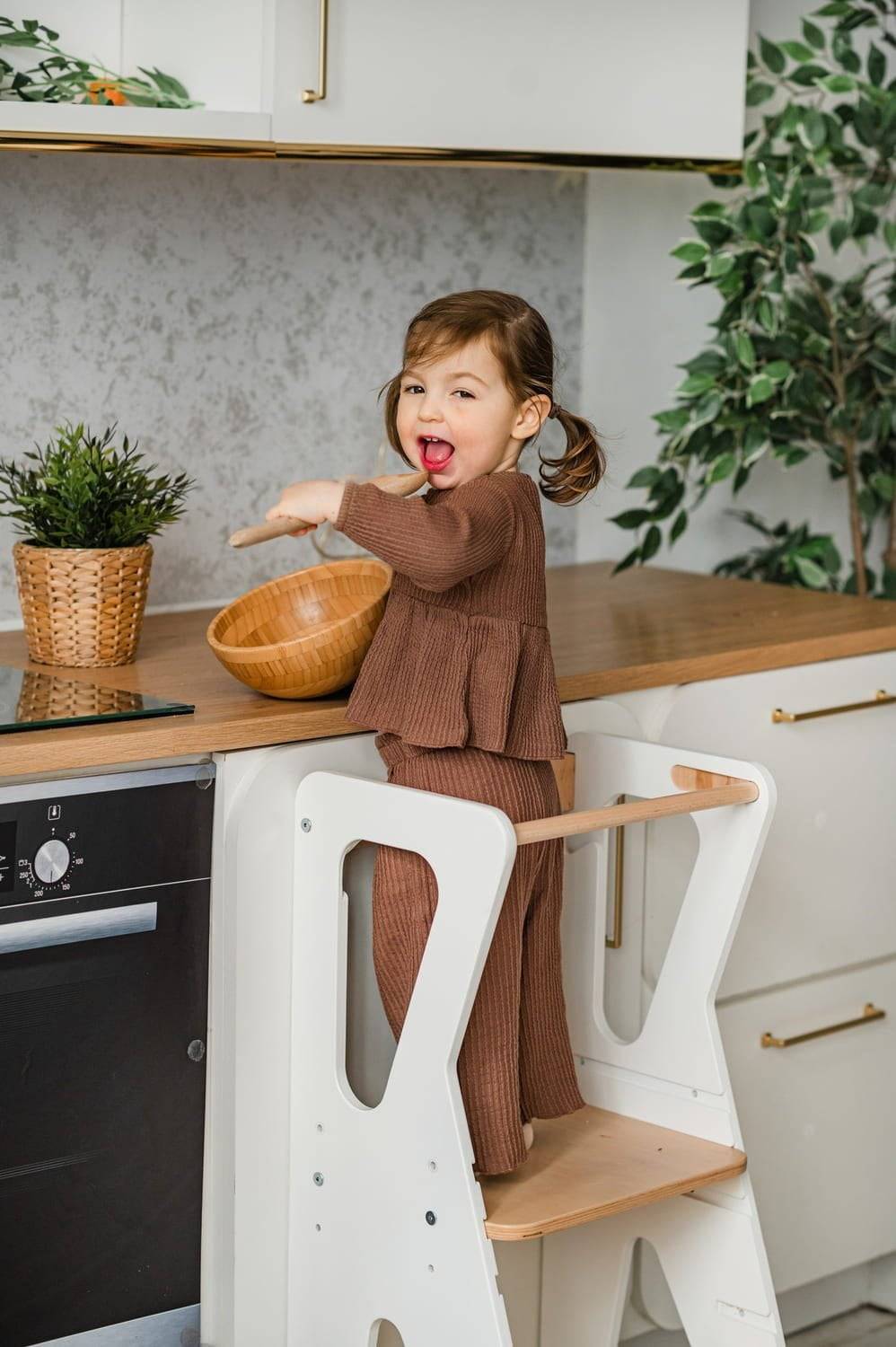 Der Lernturm Kinder hebt Ihr Kind sanft in Ihre Welt – sicher, stabil und mit viel Liebe zum Detail. Ob in der Küche, im Bad oder am Basteltisch: Ihr kleiner Mensch ist mittendrin statt nur dabei.