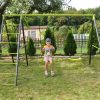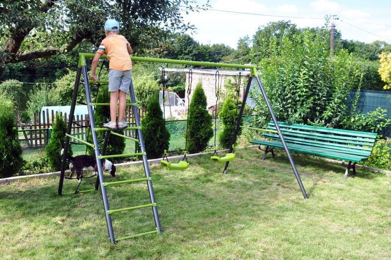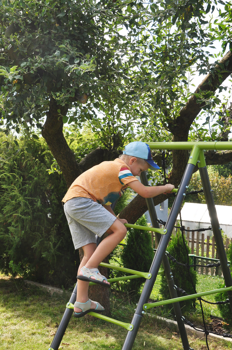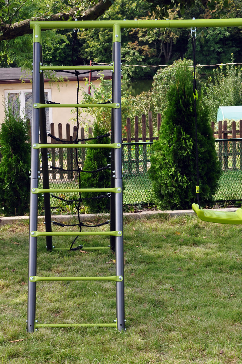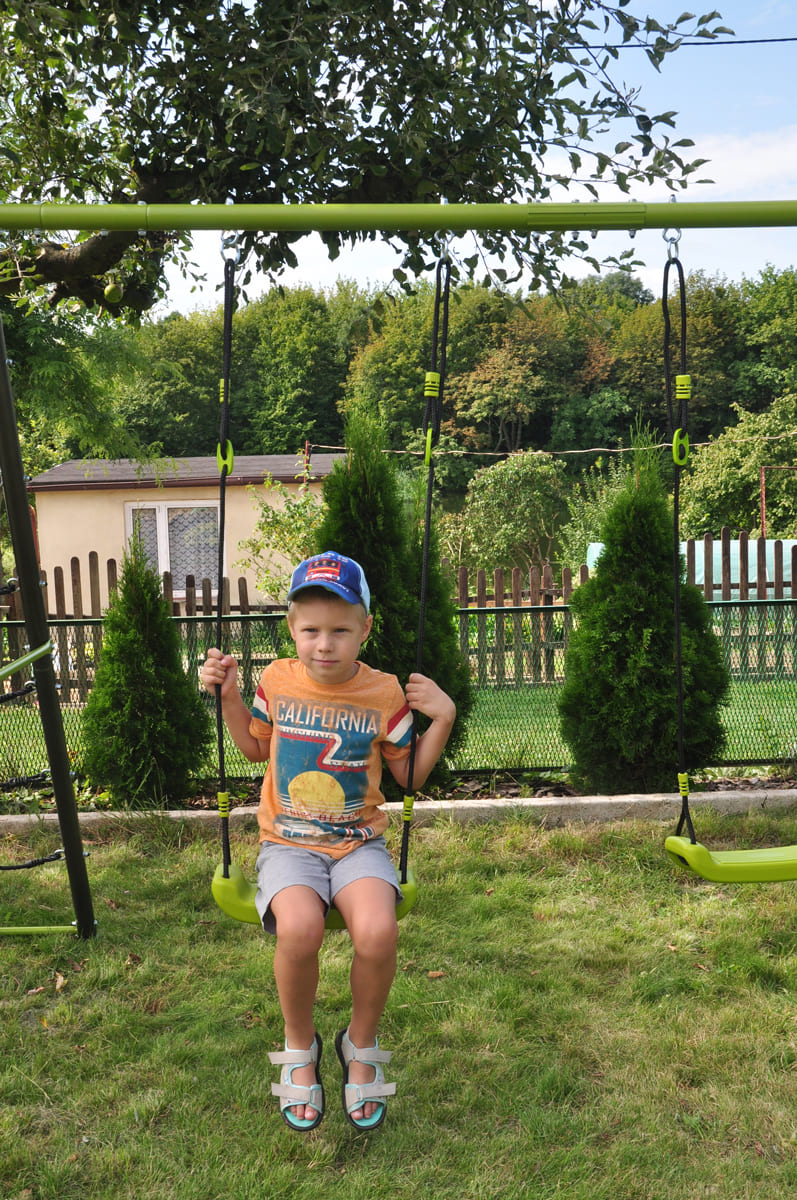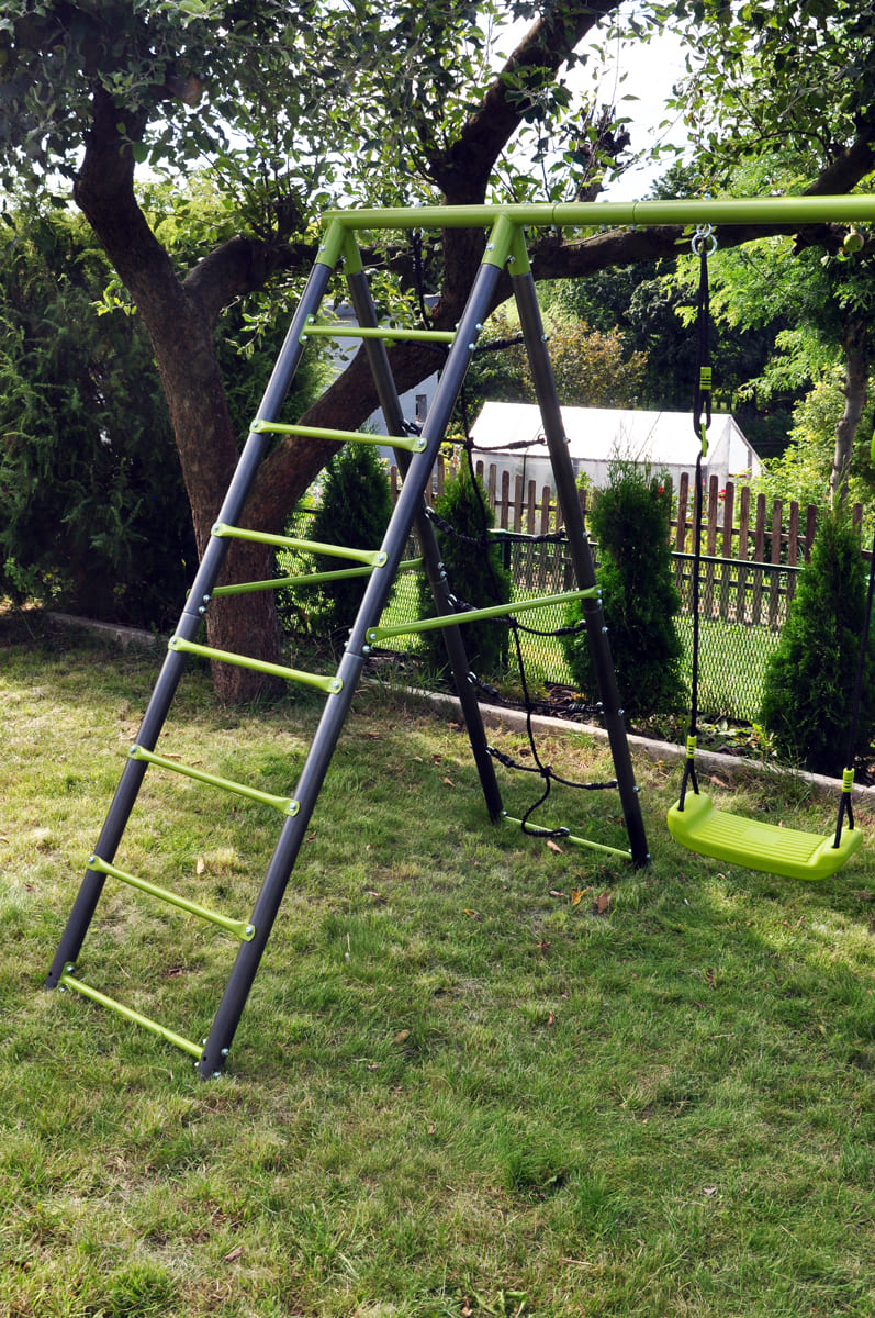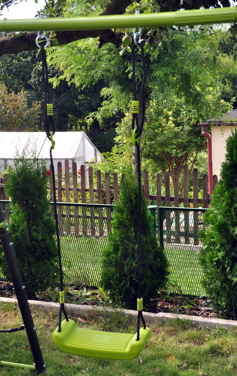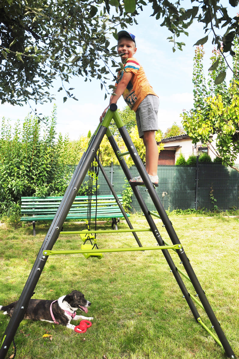Die Kindergartenschaukel vervollständigt oft das Glück der Kinder im Garten. Die Doppelschaukel, ist auf einem stabilen Metallgestell gefertigt. Dies gewährleistet die Sicherheit und Langlebigkeit des Sets.