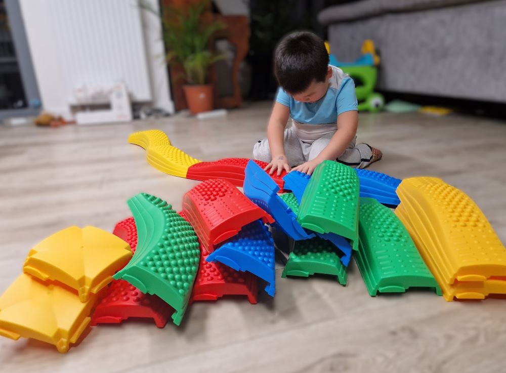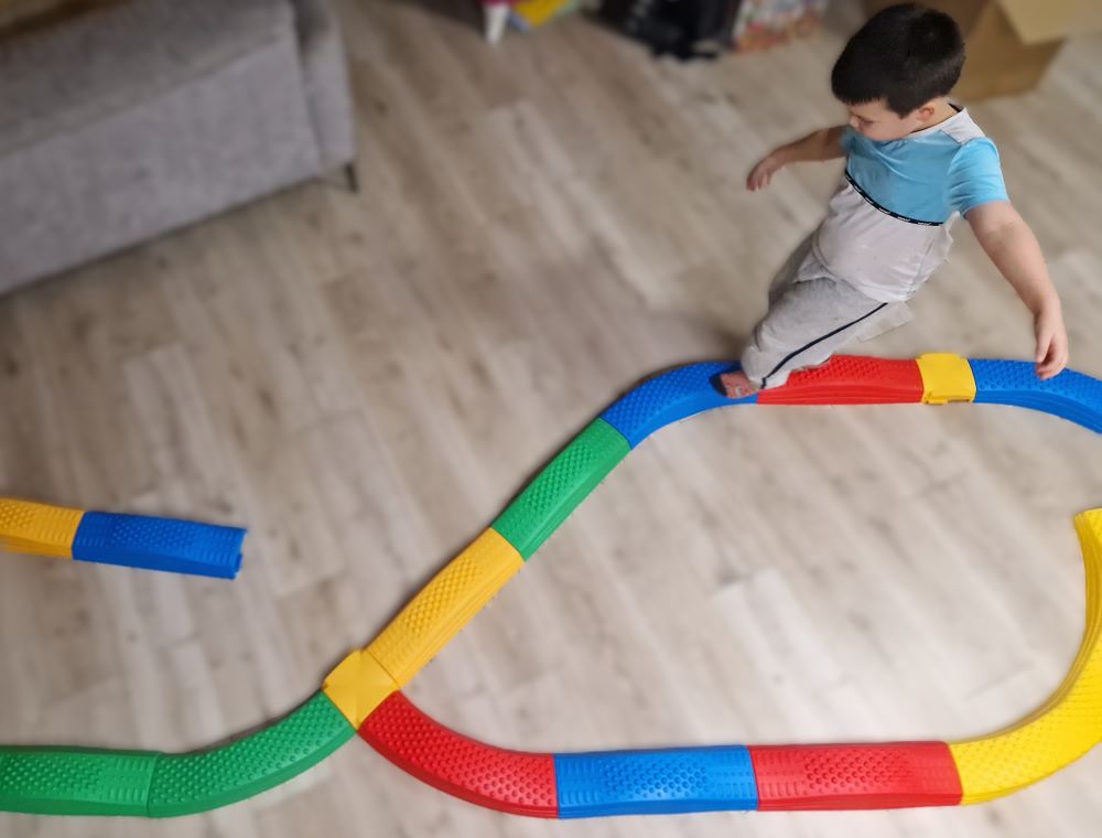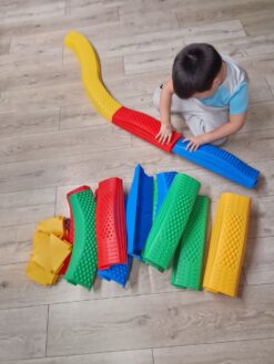 Die robusten Elemente bestehen aus hochwertigem, kindersicherem Kunststoff und sind sowohl drinnen als auch draußen einsetzbar. Jedes Element kann einzeln verwendet oder mit weiteren Modulen zu spannenden Parcours verbunden werden. So entstehen immer neue Wege, Herausforderungen und Spielideen!