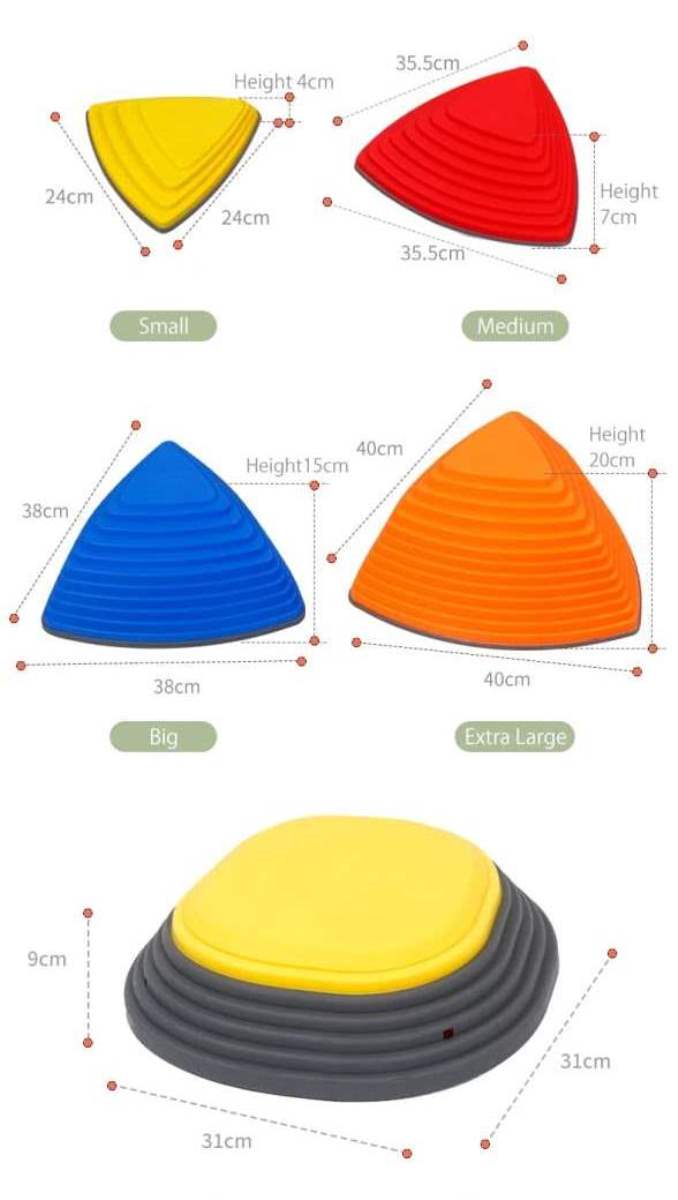 Diese dreieckigen Gleichgewichtssteine verwandeln jeden Raum in einen spannenden Balance-Parcours. Kinder lernen spielerisch, ihr Körpergefühl zu stärken und Bewegungen sicher zu koordinieren.Die rutschfesten Oberflächen und stabilen Materialien bieten maximale Sicherheit, während die verschiedenen Höhen für Abwechslung und Herausforderung sorgen. Leicht, stapelbar und robust – perfekt für zu Hause, den Kindergarten oder die Ergotherapie. Ob als Flusssteine, Trittsteine oder Motorikspielzeug, sie fördern Kreativität und Bewegung auf natürliche Weise.