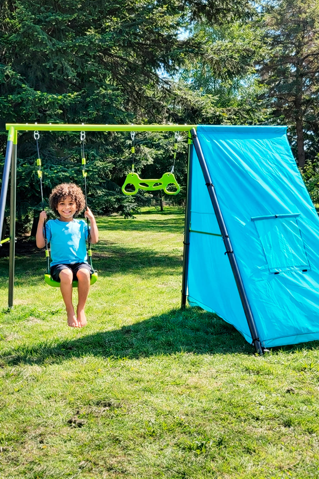 Dieses Klettergerüst outdoor verbindet Bewegung und Spiel auf einzigartige Weise: Ob Klettern, Schaukeln, Verstecken oder einfach im Zelt träumen – hier findet jedes Kind seinen Lieblingsplatz. Das mitgelieferte Zelt verwandelt das Gerüst im Handumdrehen in eine geheime Höhle, ein Piratenschiff oder eine Raumstation. Die Fantasie kennt keine Grenzen – und genau das fördern wir mit Liebe und durchdachtem Design.