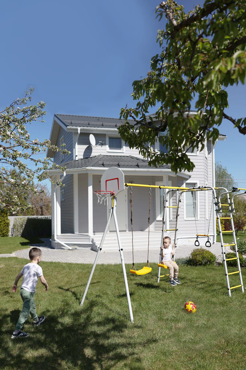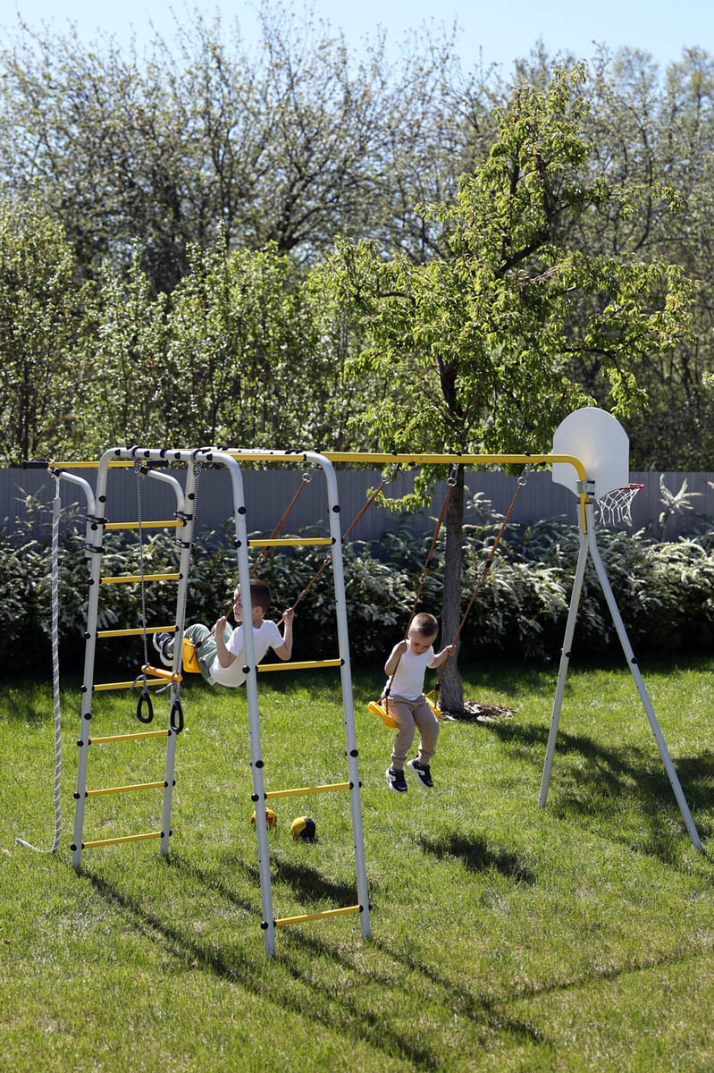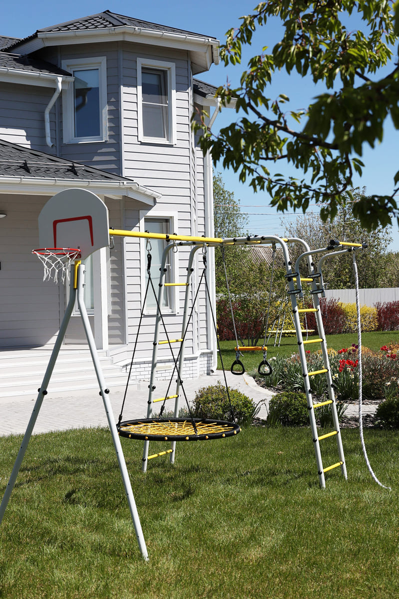 Zulässige Belastung: 100 kg (Spielgerüst), 50 kg (Zubehör)