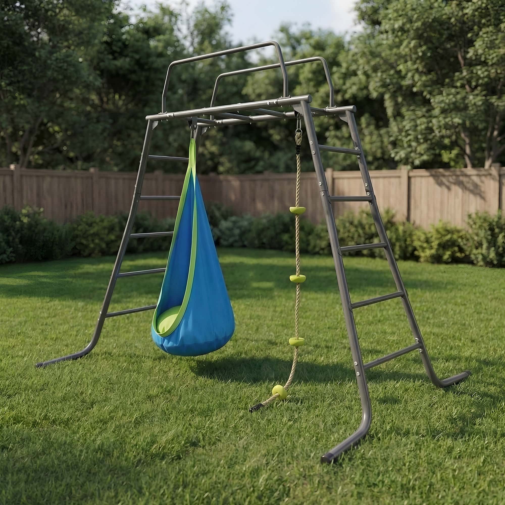 🐒 M-Bars Kids – Das vielseitige Klettergerüst im Garten mit Hängesitz und Gymnastikseil
