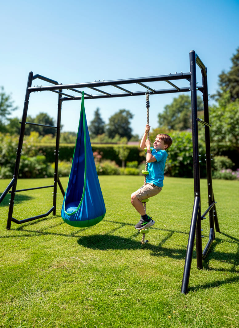 Unsere Monkey Bar mit Hängesitz ist weit mehr als ein einfaches Spielgerät. Sie ist ein Ort für kleine Heldentaten, für ruhige Momente unter freiem Himmel und für gemeinsame Familienzeit.