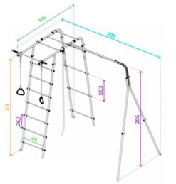 - Zulässige Belastung: 100 kg (Klettergerüst), 50 kg (Zubehör)