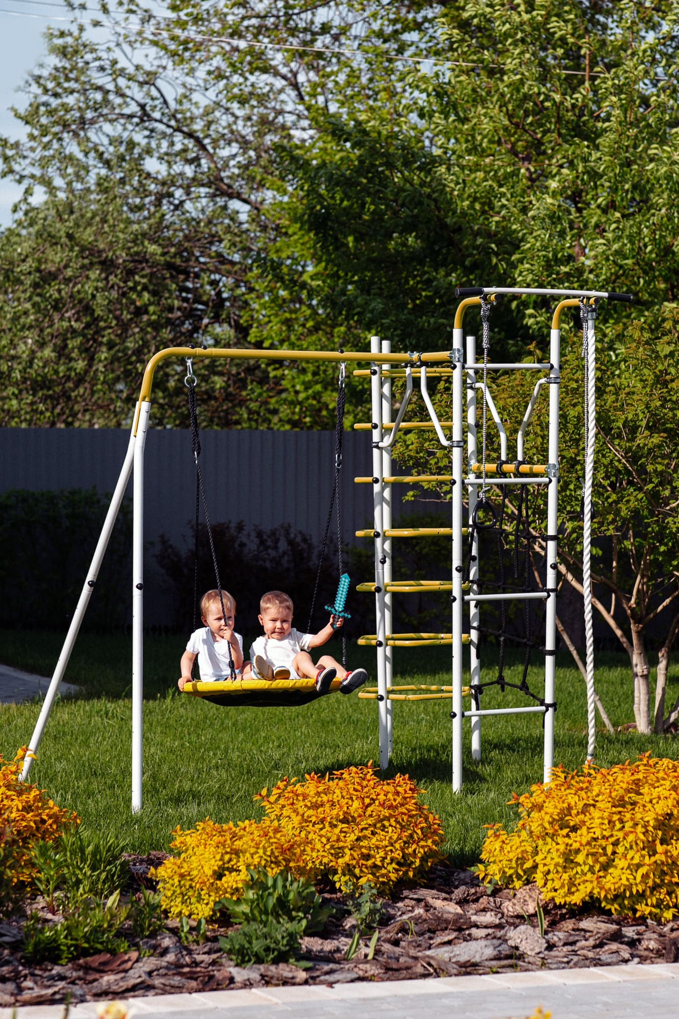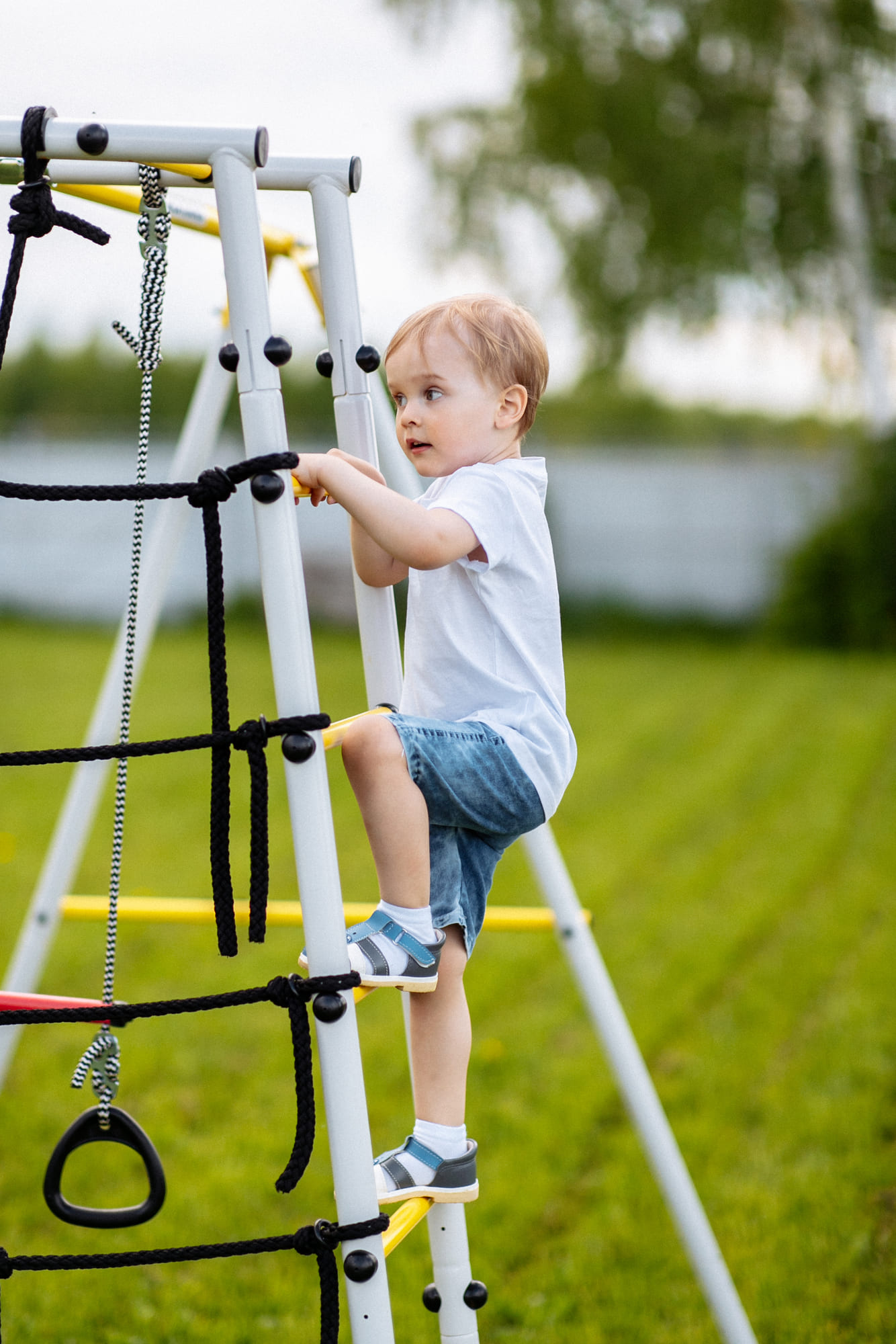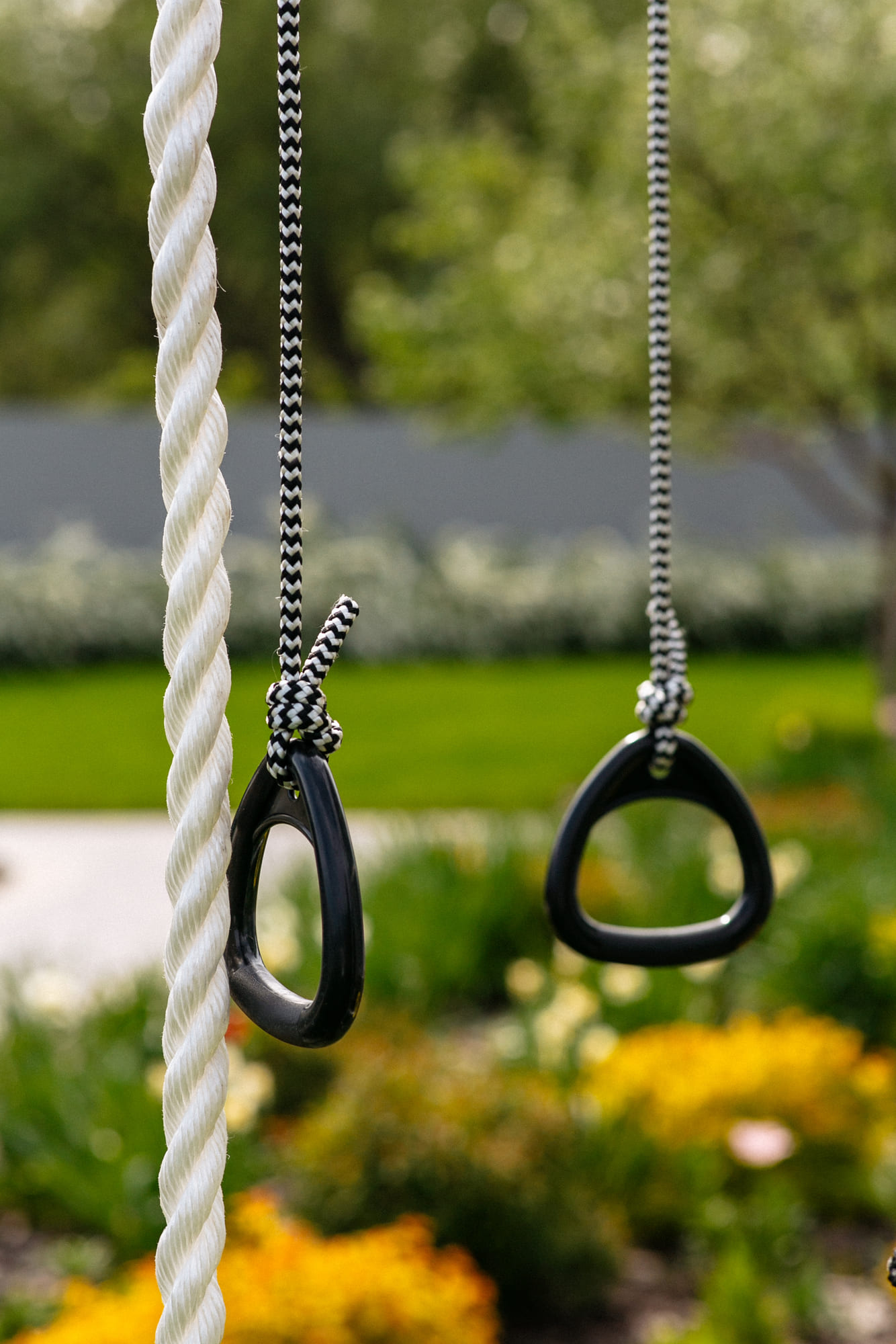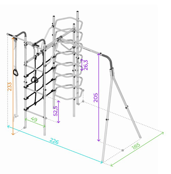 Zulässige Belastung: 100 kg (Spielgerüst), 50 kg (hängendes Zubehör)