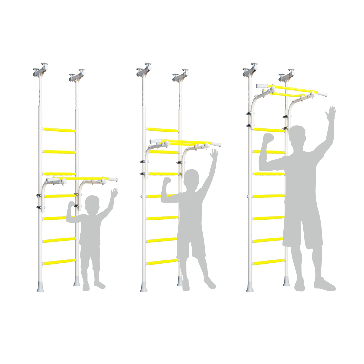 - Montage: Stabile Deckenmontage mit innovativem Klemm-System – die Sprossenwand wird fest zwischen Boden und Decke eingespannt. Kein Bohren, kein Schrauben, keine Spuren an der Wand!