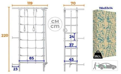 - Montage: Wandmontage, Kletternetz kann sowohl auf der rechten als auch auf der linken Seite des Sportsets montiert werden