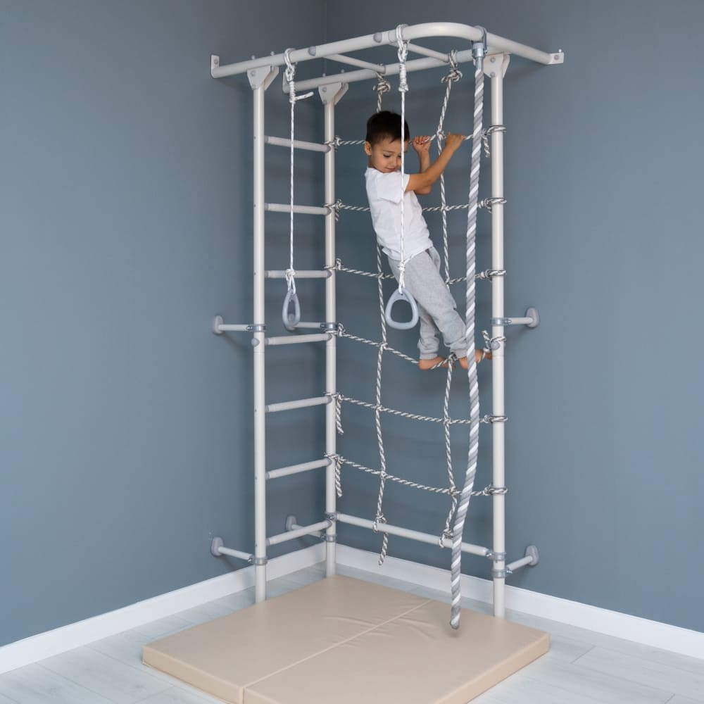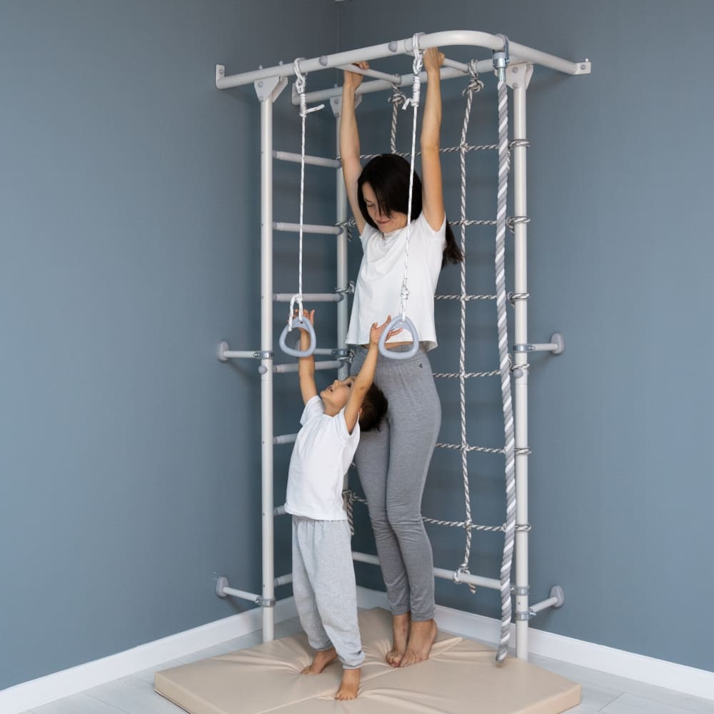 Die Sprossenwand im Kinderzimmer schafft eine tägliche Bewegungsinsel: morgens vor der Schule kurz auflockern, nachmittags aktiv spielen, abends ein wenig schaukeln – oder einfach hängen und träumen. Ob Hangeln, Klettern, Schwingen oder Balancieren – die Next 4 ist mehr als nur eine Sprossenwand. Sie ist ein kleiner Abenteuerspielplatz für Zuhause, der die Motorik stärkt, die Koordination fördert und das Selbstbewusstsein wachsen lässt.