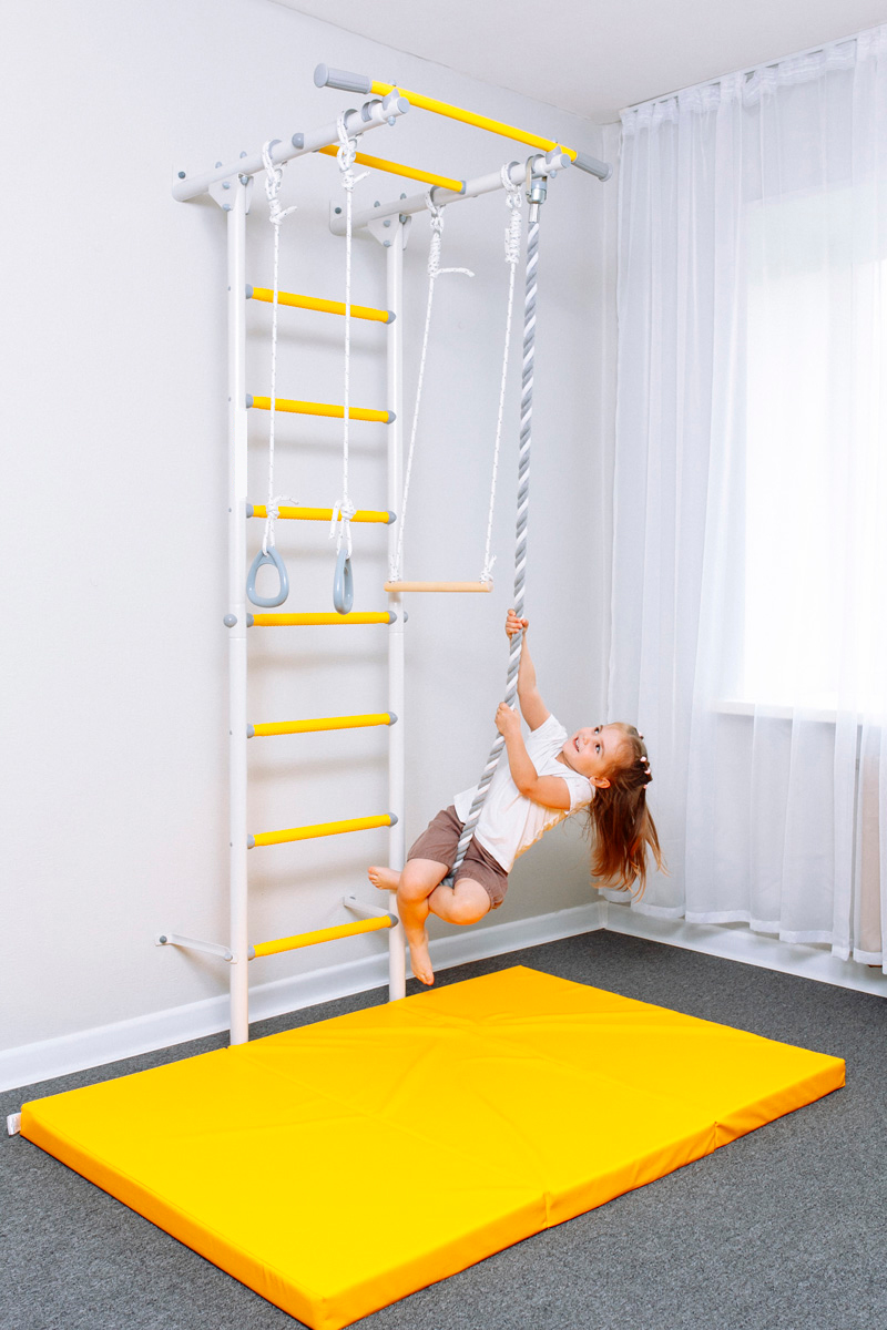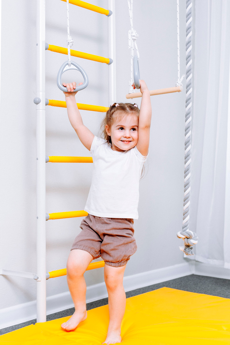 Diese Sprossenwand fürs Kinderzimmer lädt zum Klettern, Hängen, Balancieren und Spielen ein. Sie fördert spielerisch die Motorik, verbessert die Koordination und macht Bewegung zu einem ganz natürlichen Teil des Alltags. Dabei ist sie nicht nur für Kinder gedacht – auch Eltern können sie nutzen, um gemeinsam aktiv zu sein oder sich fit zu halten.
