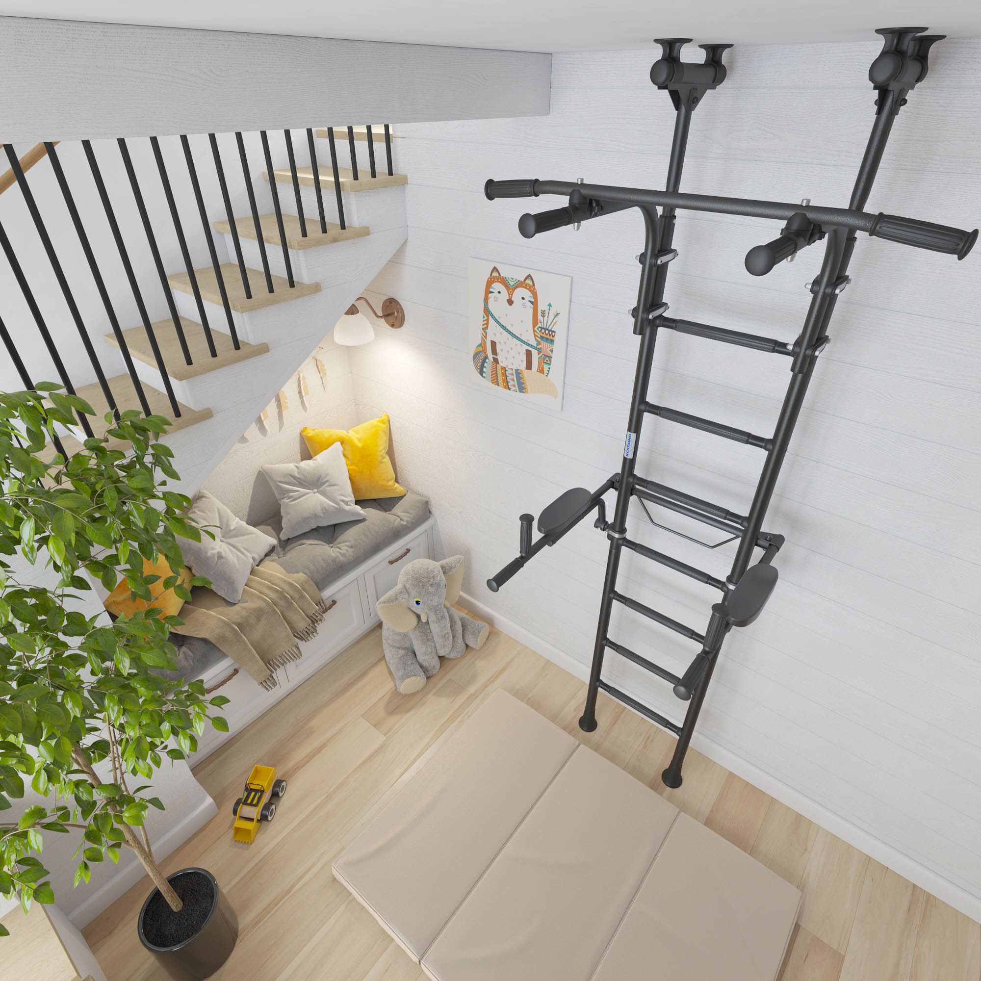 In einem Alter, in dem vieles im Wandel ist, kann ein stabiler Ort für körperliche Aktivität einen großen Unterschied machen. Diese Sprossenwand fürs Kinderzimmer (oder Jugendzimmer) fördert gezielt Kraft, Beweglichkeit, Koordination und Körpergefühl – ganz ohne Leistungsdruck, dafür mit echter Motivation.