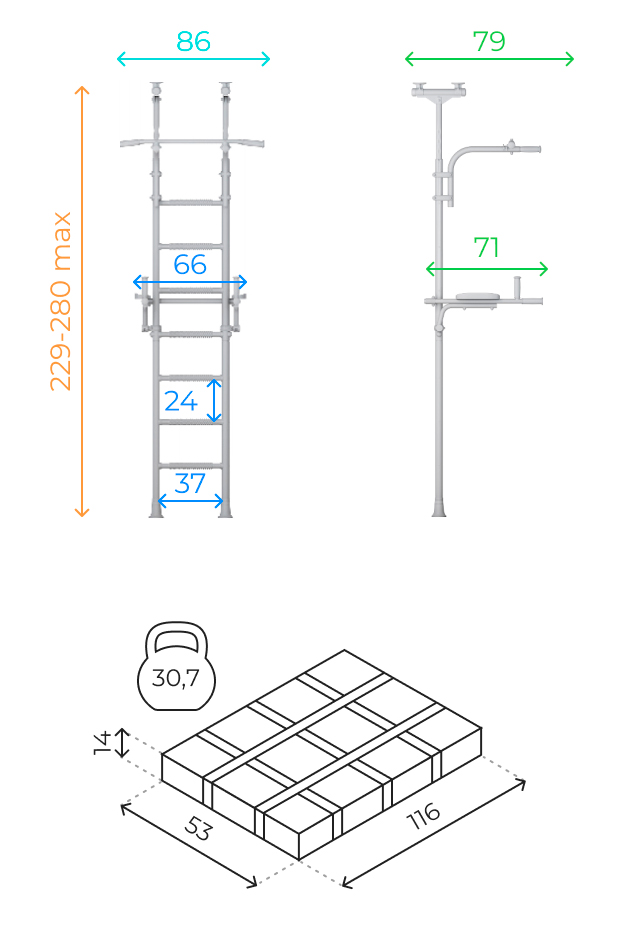 Sprossenwand Teenager Plus deckenmontage