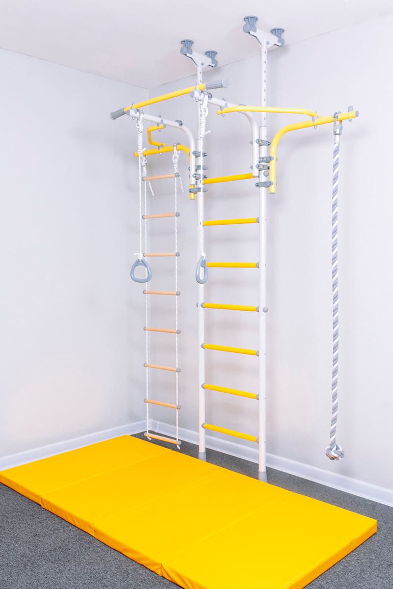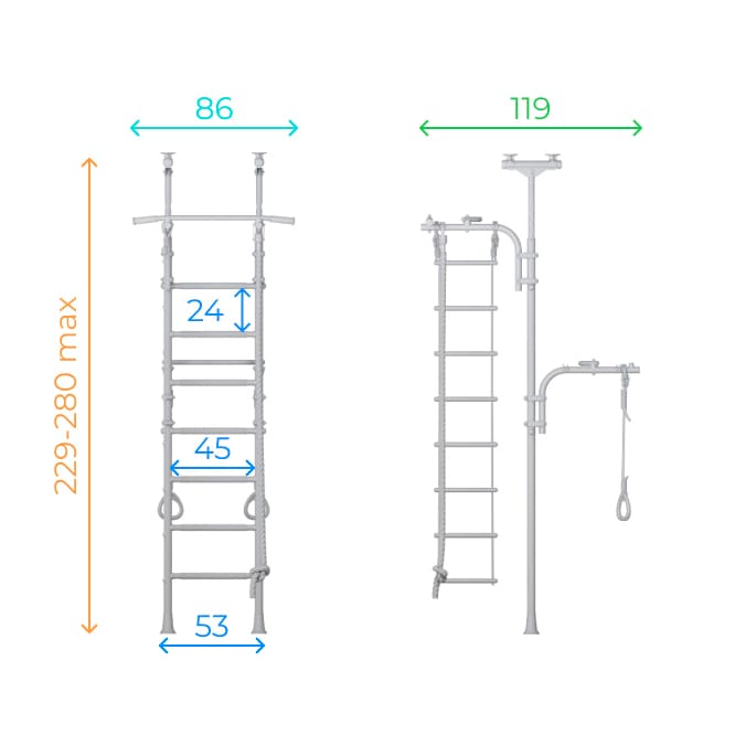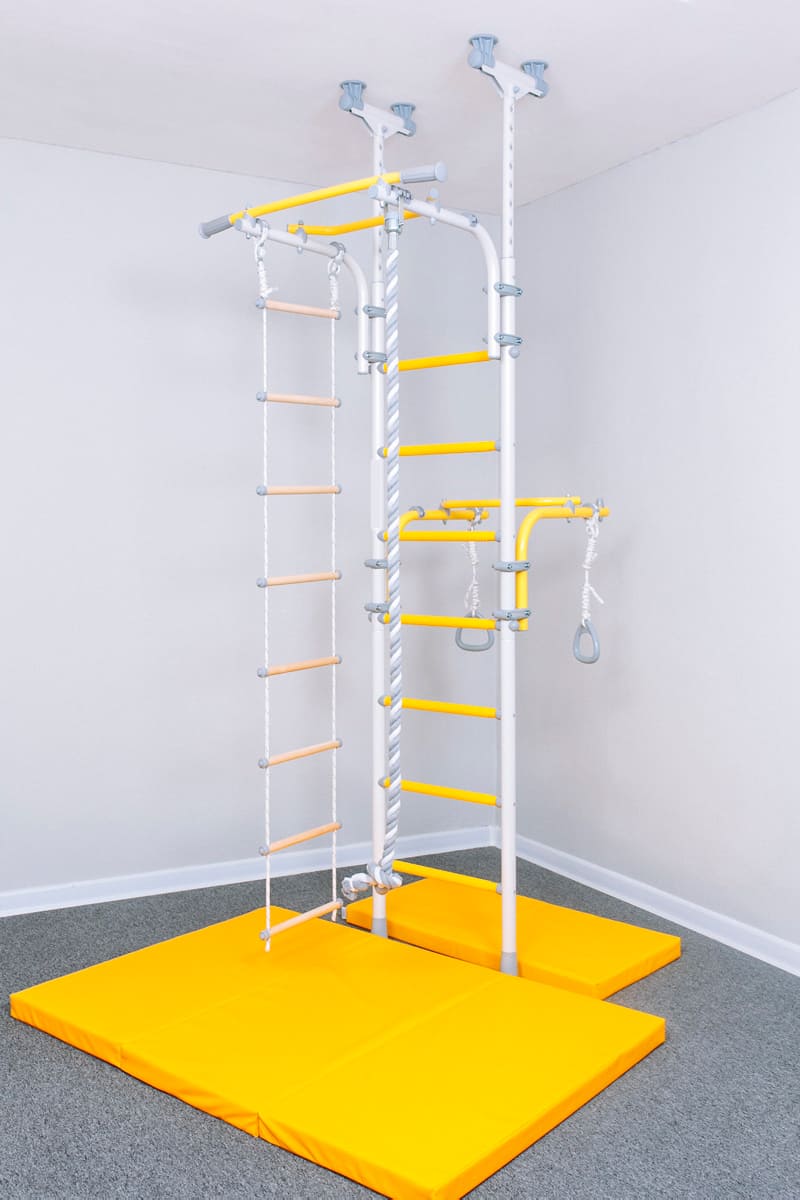 Maximale Belastung: 100 kg (Sprossenwand & Klimmzugstange), 50 kg (Zubehör)